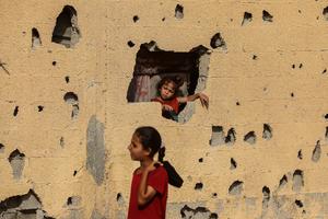 (250819) — GAZA, 19 agosto, 2025 (Xinhua) — Imagen del 14 de agosto de 2025 de niñas palestinas desplazadas vistas en el área costera de la Ciudad de Gaza. Mientras el martes se conmemora el Día Mundial de la Asistencia Humanitaria en todos los países, Medio Oriente y el Norte de Africa siguen sumidos en algunas de las crisis más graves del mundo, especialmente en el ámbito humanitario. (Xinhua/Rizek Abdeljawad) (jg) (ra) (vf)
