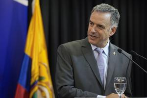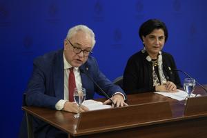 (250819) -- MONTEVIDEO, 19 agosto, 2025 (Xinhua) -- El ministro de Relaciones Exteriores uruguayo, Mario Lubetkin (i), y la ministra...