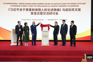 (250820) -- TASHKENT, 20 agosto, 2025 (Xinhua) -- Una ceremonia para presentar la edición en lengua uzbeka del libro "Xi...