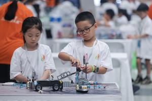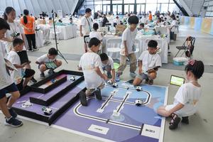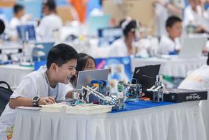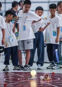 (250820) -- TONGXIANG, 20 agosto, 2025 (Xinhua) -- Participantes son vistos en una competencia del desafío de "planeta inteligente" durante...