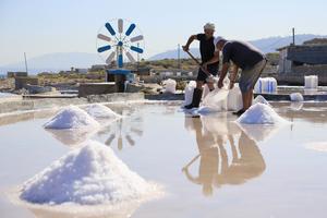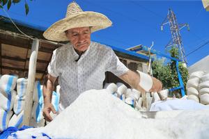 (250820) -- ANFEH, 20 agosto, 2025 (Xinhua) -- Un trabajador produce sal mediante métodos tradicionales de secado al sol, en...