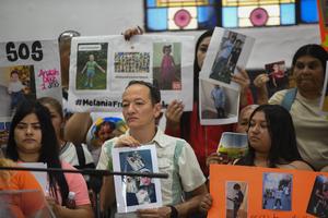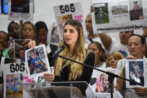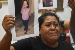 (250819) -- CARACAS, 19 agosto, 2025 (Xinhua) -- Familiares de menores migrantes que permanecen en Estados Unidos sostienen fotografías durante...