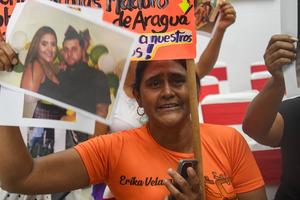 (250819) -- CARACAS, 19 agosto, 2025 (Xinhua) -- Una mujer familiar de un menor migrante que permanece en Estados Unidos...