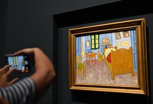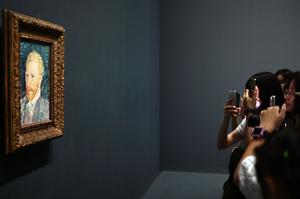 (250820) -- SHANGHAI, 20 agosto, 2025 (Xinhua) -- Un visitante toma fotografías de una obra maestra de Vincent van Gogh...