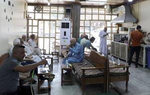 (250821) -- BAGDAD, 21 agosto, 2025 (Xinhua) -- Imagen del 16 de agosto de 2025 de personas en una cafetería,...