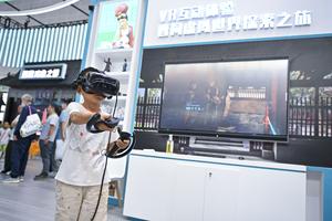 (250821) -- TAIYUAN, 21 agosto, 2025 (Xinhua) -- Un niño usa un dispositivo de realidad virtual para observar el templo...