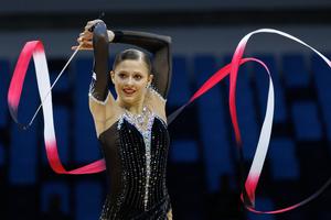 (250822) -- RIO DE JANEIRO, 22 agosto, 2025 (Xinhua) -- Imagen del 21 de agosto de 2025 de Anastasia Simakova, de Alemania, compitiendo en la ronda de clasificación individual de cinta durante el 41 Campeonato Mundial de Gimnasia Rítmica de la FIG, en Río de Janeiro, Brasil. (Xinhua/Claudia Martini) (oa) (ra) (ce)