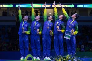 BRASIL-RIO DE JANEIRO-GIMNASIA RITMICA-CAMPEONATO MUNDIAL DE LA FIG-CONCURSO COMPLETO GRUPAL-CEREMONIA DE PREMIACION