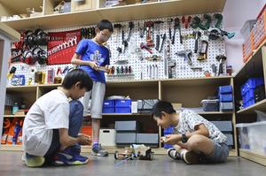 (250823) -- BEIJING, 23 agosto, 2025 (Xinhua) -- Imagen del 21 de agosto de 2025 de niños participando en juegos de batallas de robots en una institución de formación científica y tecnológica, en Shanghai, en el este de China. Las vacaciones de verano están llegando a su fin y los niños de todo el país han pasado unas vacaciones maravillosas con diversas actividades que van desde innovaciones científicas y tecnológicas hasta deportes al aire libre. (Xinhua/Fang Zhe) (oa) (da)