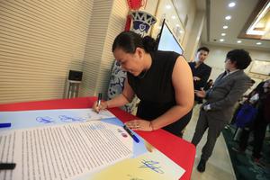 (250823) -- QUITO, 23 agosto, 2025 (Xinhua) -- Imagen del 21 de agosto de 2025 de una estudiante becada firmando la "Iniciativa Mundial de la Juventud por la Paz" durante una despedida en honor a los becarios ecuatorianos previa a su viaje a China, en la ciudad de Quito, capital de Ecuador. Un grupo de 40 estudiantes ecuatorianos accedió a becas para estudios de educación superior de tercer y cuarto nivel, así como para estudiar el idioma chino, ofertadas por el Gobierno de China dentro de un programa de cooperación con el país sudamericano, informó la encargada de Negocios interina de la Embajada de China en Ecuador, Wei Lin. (Xinhua/Ricardo Landeta) (rl) (oa) (da)