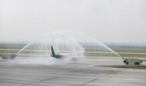 (250825) -- ZUMPANGO, 25 agosto, 2025 (Xinhua) -- Imagen del 25 de agosto de 2025 de la aeronave EMBRAER E-195 de la Aerolínea del Estado Mexicano "Mexicana" recibiendo un saludo de agua previo a su primer vuelo en el Aeropuerto Internacional Felipe Angeles, en Zumpango, México. (Xinhua/Francisco Cañedo) (fc) (oa) (ah) (vf)