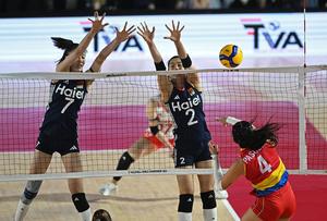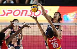 (250825) -- CHIANG MAI, 25 agosto, 2025 (Xinhua) -- Wang Yuanyuan (i), y Zhuang Yushan (c), de China, bloquean durante...
