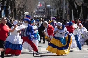 (250825) -- FLORIDA, 25 agosto, 2025 (Xinhua) -- Imagen proveída por la Presidencia de Uruguay de personas portando trajes tradicionales...