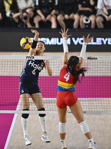 (250825) -- CHIANG MAI, 25 agosto, 2025 (Xinhua) -- Gong Xiangyu (d), de China, clava el balón durante el partido...