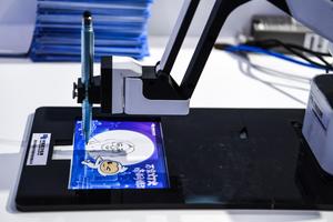 (250828) -- GUIYANG, 28 agosto, 2025 (Xinhua) -- Un robot inteligente con IA para dibujar retratos, exhibido por China Southern...