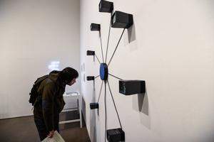 (250828) -- SANTIAGO, 28 agosto, 2025 (Xinhua) -- Imagen del 26 de agosto de 2025 de una persona observando una obra en la muestra chilena "Ida y Vuelta", en el Centro de Extensión de la Pontificia Universidad Católica de Chile, en Santiago, capital de Chile. Numerosos viajes convertidos en poemas, bitácoras, fotografías y otras expresiones artísticas son exploradas en la muestra chilena "Ida y Vuelta", en el marco del 7° Festival de Libros, que se lleva a cabo en la capital Santiago hasta el 30 de septiembre próximo. (Xinhua/Jorge Villegas) (jv) (jg) (ah) (ce)