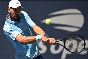(250828) -- NUEVA YORK, 28 agosto, 2025 (Xinhua) -- Imagen del 27 de agosto de 2025 de Novak Djokovic, de Serbia, devolviendo la pelota durante el partido de la segunda ronda de individuales masculinos, ante Zachary Svajda, de Estados Unidos, en el campeonato de tenis US Open 2025, en Nueva York, Estados Unidos. (Xinhua/Li Rui) (rtg) (ra) (vf)
