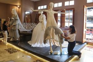 (250828) -- SAN SALVADOR, 28 agosto, 2025 (Xinhua) -- Imagen del 23 de agosto de 2025 de Roxana Artiga (i), técnico de desarrollo empresarial con énfasis en artesanías, y Paola Bustillo (d), acomodando vestuarios en maniquíes en el Centro de Desarrollo Artesanal Interactivo (CEDART), en el departamento de San Salvador, capital de El Salvador. En el centro histórico de San Salvador, la capital salvadoreña, en las inmediaciones de la emblemática plaza Morazán, se levanta un edificio de tres niveles que busca tender un puente entre tradición y modernidad: el CEDART. (Xinhua/Alexander Peña) (ap) (ah) (ra) (vf)
