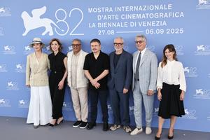 (250827) -- VENECIA, 27 agosto, 2025 (Xinhua) -- Miembros del jurado del 82 Festival Internacional de Cine de Venecia posan en la sesión fotográfica, en Venecia, Italia, el 27 de agosto de 2025. El 82 Festival de Cine de Venecia se celebra del 27 de agosto al 6 de septiembre en la isla del Lido de Venecia, en Italia. (Xinhua/Li Jing) (ah) (ra) (vf)
