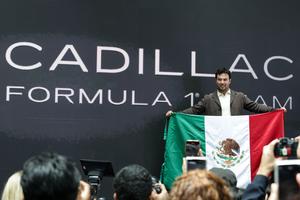 (250827) -- CIUDAD DE MEXICO, 27 agosto, 2025 (Xinhua) -- El piloto mexicano de Fórmula 1, Sergio Pérez, sostiene una bandera nacional mexicana durante una conferencia de prensa sobre su regreso a la Fórmula 1 en 2026 como parte del equipo de Cadillac, en la Ciudad de México, capital de México, el 27 de agosto de 2025. (Xinhua/Francisco Cañedo) (fc) (jg) (da) (ce)