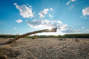(250827) -- VARSOVIA, 27 agosto, 2025 (Xinhua) -- Imagen del 26 de agosto de 2025 del lecho seco del río...