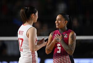 (250827) -- CHIANG MAI, 27 agosto, 2025 (Xinhua) -- Jugadoras de China festejan la victoria al término del partido del...