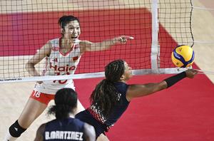(250827) -- CHIANG MAI, 27 agosto, 2025 (Xinhua) -- Zhuang Yushan (2-d), de China, clava el balón durante el partido...