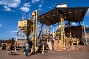 (250828) -- MINAS GERAIS, 28 agosto, 2025 (Xinhua) -- Imagen del 27 de agosto de 2025 de un trabajador procesando...