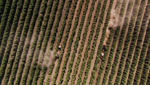 (250828) -- MINAS GERAIS, 28 agosto, 2025 (Xinhua) -- Imagen del 27 de agosto de 2025 de un trabajador recolectando...