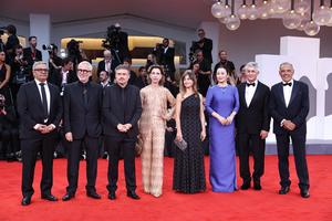 (250828) -- VENECIA, 28 agosto, 2025 (Xinhua) -- Imagen del 27 de agosto de 2025 de los miembros del jurado...