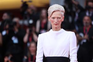 (250828) -- VENECIA, 28 agosto, 2025 (Xinhua) -- Imagen del 27 de agosto de 2025 de la actriz Tilda Swinton...