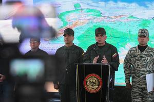 (250827) -- CARACAS, 27 agosto, 2025 (Xinhua) -- El ministro del Poder Popular para la Defensa de Venezuela, Vladimir Padrino López (2-d), habla durante una conferencia de prensa, en Caracas, Venezuela, el 27 de agosto de 2025. Padrino López exhortó el miércoles a la población a alistarse en la Milicia Nacional Bolivariana, y reiteró el rechazo a las acusaciones estadounidenses que pretenden vincular al Gobierno del presidente Nicolás Maduro con grupos criminales.(Xinhua/Marcos Salgado) (ms) (ah) (ra) (vf)