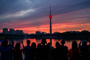 (250829) -- BEIJING, 29 agosto, 2025 (Xinhua) -- Imagen del 29 de agosto de 2025 de turistas tomando fotografías del...