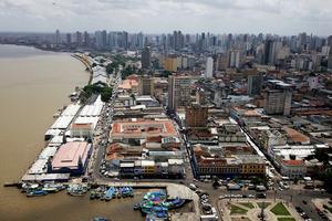 (250829) -- BELEM, 29 agosto, 2025 (Xinhua) -- Vista aérea tomada con un dron de Belém, estado de Pará, Brasil,...