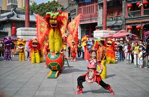 (250829) -- TIANJIN, 29 agosto, 2025 (Xinhua) -- Artistas de arte folclórico realizan una presentación, en Tianjin, en el norte...