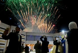 (250829) -- DAMASCO, 29 agosto, 2025 (Xinhua) -- Imagen del 27 de agosto de 2025 de fuegos artificiales iluminando el...