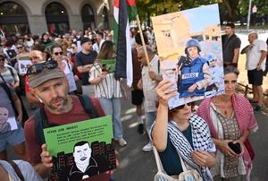 (250828) -- ZAGREB, 28 agosto, 2025 (Xinhua) -- Periodistas croatas participan en una protesta contra el asesinato de periodistas palestinos...
