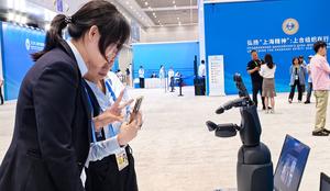 (Cumbre OCS Tianjin) CHINA-TIANJIN-CENTRO DE MEDIOS-ROBOTS