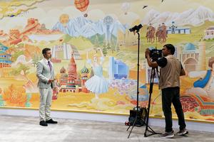 (250830) -- TIANJIN, 30 agosto, 2025 (Xinhua) -- Reporteros extranjeros trabajan en el centro de medios de la Cumbre 2025...