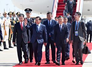 (250830) -- TIANJIN, 30 agosto, 2025 (Xinhua) -- Min Aung Hlaing, presidente interino de Myanmar, llega para asistir a la...