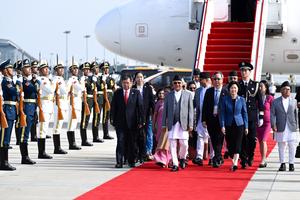 (250830) -- TIANJIN, 30 agosto, 2025 (Xinhua) -- El primer ministro nepalí, KP Sharma Oli, llega para asistir a la...