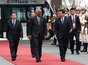 (250830) -- BEIJING, 30 agosto, 2025 (Xinhua) -- El presidente maldivo, Mohamed Muizzu, llega para asistir a la Cumbre 2025...