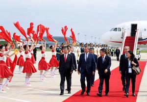 (250830) -- TIANJIN, 30 agosto, 2025 (Xinhua) -- El presidente azerbaiyano, Ilham Aliyev, llega para asistir a la Cumbre 2025...