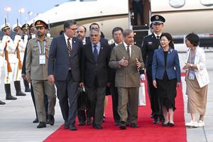 (250830) -- TIANJIN, 30 agosto, 2025 (Xinhua) -- El primer ministro camboyano, Hun Manet, llega para asistir a la Cumbre...