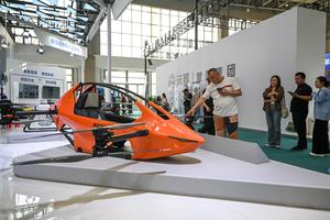 (250829) -- HOHHOT, 29 agosto, 2025 (Xinhua) -- Personas visitan la zona de exhibición de economía de baja altitud durante...