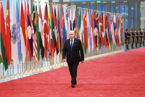 (250831) -- TIANJIN, 31 agosto, 2025 (Xinhua) -- El presidente ruso, Vladimir Putin, llega al Centro de Convenciones y Exposiciones...