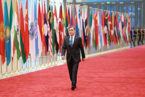 (250831) -- TIANJIN, 31 agosto, 2025 (Xinhua) -- El secretario general de la Organización de Cooperación Económica, Asad Khan, llega...