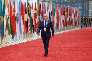 (250831) -- TIANJIN, 31 agosto, 2025 (Xinhua) -- El secretario general de la Comunidad de Estados Independientes, Sergey Lebedev, llega...