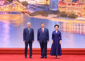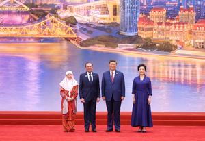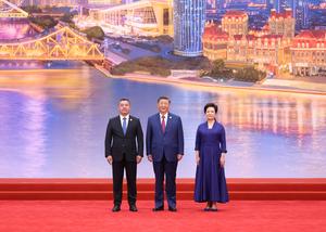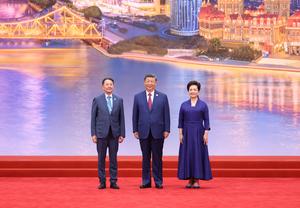 (250831) -- TIANJIN, 31 agosto, 2025 (Xinhua) -- El presidente chino, Xi Jinping y su esposa, Peng Liyuan, posan para...