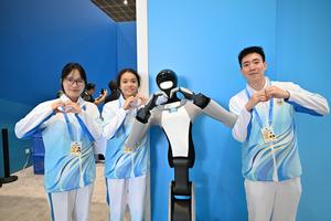 (250831) -- TIANJIN, 31 agosto, 2025 (Xinhua) -- Imagen del 30 de agosto de 2025 de voluntarios gesticulando para fotografías...